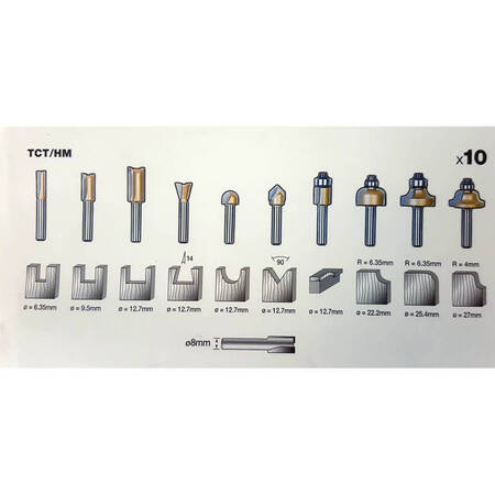 Производитель STANLEY; Набор фрез по дереву из 10 шт. с диаметром хвостовика 8 мм.