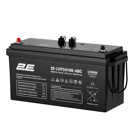 Акумуляторна батарея 2E LFP24 є літій-залізо-фосфатна батарея з напругою 24 В та ємністю 100 А годин. Вона має 8 послідовно з'єднаних акумуляторів (ABC 8S). Ця батарея є надійним джерелом енергії з високими показниками продуктивності та тривалим терміном служби. Вона ідеально підходить для використання в різних пристроях, таких як електричні транспортні засоби, електричні інструменти та інші пристрої, які потребують стабільного живлення.