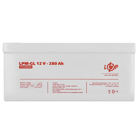 LPM-GL 12 - 280 AH - гелевий акумулятор, конструкція якого передбачає застосування сучасної технології GEL (використовуються намазні пластини, з нанесеним на них електролітом в гелеобразном стані).