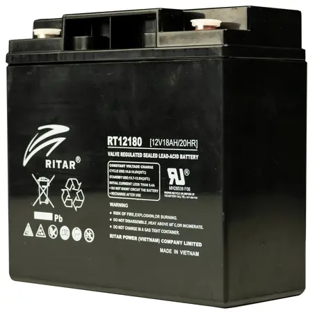 Акумуляторна батарея Ritar RT12180 є герметичною свинцево-кислотною батареєю з напругою 12 В та ємністю 18 ампер-годин. Ця батарея від Ritar є надійним джерелом живлення, яке може використовуватися для різноманітних застосувань, таких як резервне живлення, безперебійні джерела живлення, системи безпеки, електронні пристрої та багато іншого.