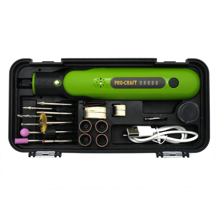 Акумуляторна гравіювальна машина Procraft PG8 - це портативний інструмент, який призначений для гравіювання на різних поверхнях, таких як метал, скло, дерево, пластик та інші матеріали. Основні характеристики цієї гравіювальної машини можуть включати: