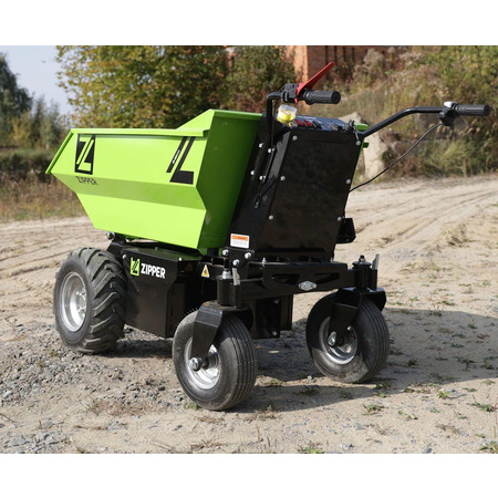 Акумуляторна тачка Zipper ZI-ED500 має електричний привід, який дозволяє легко переміщати великі вантажі без зайвих зусиль. Керування тачкою здійснюється за допомогою керма і ручного рульового колеса. Вона може бути використана для перевезення будівельних матеріалів, садових інструментів або інших важких предметів.