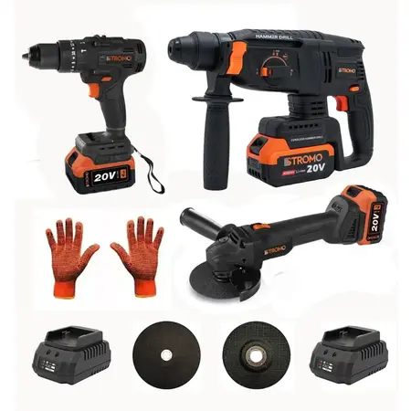 Акумуляторний набір 3 в 1 Stromo РА210SET (шурупокрут, болгарка, перфоратор 3 АКБ 20V, 4 A/г + ЗП 2шт)