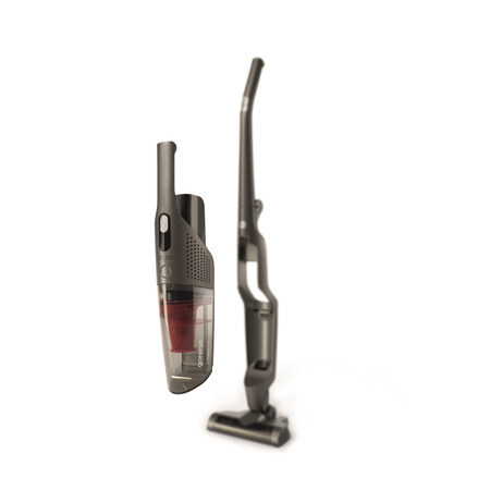Це автономний пилосос. Не потрібно паркувати його на зарядній станції. Зручна складна ручка дозволяє прибрати пилосос на зберігання в невелику шафку, а від'єднаний акумулятор можна заряджати будь-де.