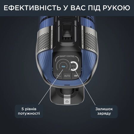 Дисплей Smart Control показує залишок заряду батареї та сповіщує про необхідність очищення фільтра, а також дозволяє регулювати потужність відповідно до ваших потреб за допомогою 4 різних рівнів і тригера Boost.