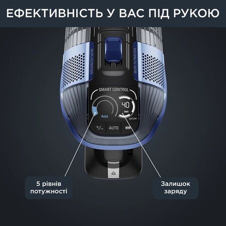 Дисплей Smart Control показує залишок заряду батареї та сповіщує про необхідність очищення фільтра, а також дозволяє регулювати потужність відповідно до ваших потреб за допомогою 4 різних рівнів і і тригера Boost.