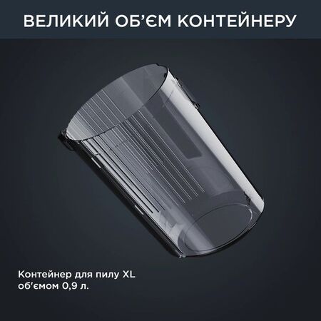 Насолоджуйтесь тривалими сеансами прибирання з контейнером для пилу XL об'ємом 0,9 л, який надзвичайно легко спорожнити та на 100% мити з сепаратором та фільтром.