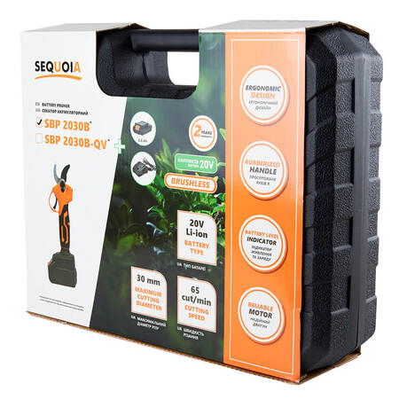 Акумуляторний секатор SEQUOIA SBP2030B<br><br>Марка SEQUOIA SBP2030B відома своєю надійністю і ефективністю. Цей акумуляторний секатор працює на Li-ion батареї потужністю 20 В, що забезпечує швидку і легку обрізку гілок діаметром до 30 мм. Вага лише 1.5 кг робить його зручним у використанні, а компактний дизайн і зручна ручка дозволяють працювати без втоми.<br><br>Переваги:<br>- Потужний і надійний інструмент<br>- Легка і швидка обрізка<br>- Велика продуктивність на одному заряді<br>- Зручний у використанні<br><br>Технічні характеристики:<br>- Джерело живлення: Li-ion, 20 В<br>- Діаметр різу: 30 мм<br>- Вага: 1.5 кг<br><br>Де використовувати:<br>Акумуляторний секатор SEQUOIA SBP2030B ідеально підходить для обрізки гілок у саду, садовому господарстві або в приватному господарстві. Він стане великим допомічником для професійних садівників та просто любителів городництва.<br><br>Замовляйте зараз з доставкою по Україні і насолоджуйтеся легкою та швидкою обрізкою з акумуляторним секатором SEQUOIA SBP2030B!