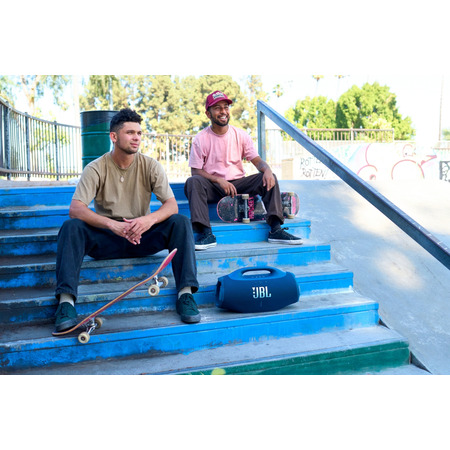 Оновлений дизайн Boombox 4 робить його більшим і гучнішим, але при цьому легшим і зручним для перенесення. Захист від води й пилу забезпечує спокійність у будь-яких умовах. Із до 34 годинами роботи на одному заряді, ви можете насолоджуватися музикою практично безперервно.