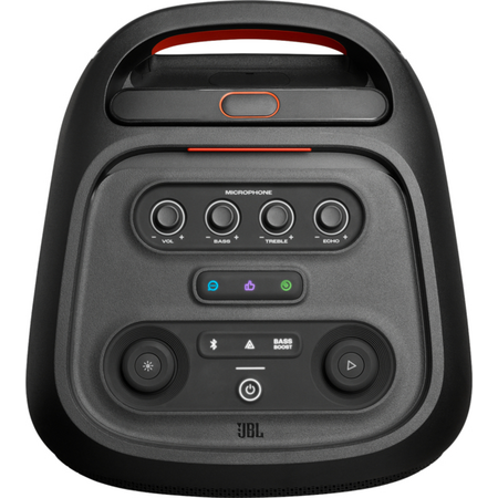 Насолоджуйтесь потужним звучанням JBL Pro від двох 6,5-дюймових низькочастотних динаміків, що забезпечують чисті, точні та глибокі баси навіть на максимальній гучності, і парою високочастотних купольних динаміків розміром 25 мм, які створюють кришталево чисті високі частоти. Ви можете заповнити музикою простір розміром з тенісний корт, як у приміщенні, так і на вулиці.