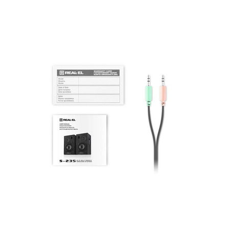 Мультимедійна акустична система REAL-EL S-235 – легке й доступне вирішення питання озвучування комп’ютера (ноутбука). АС оснащена вмонтованим підсилювачем, акустичним та сигнальним кабелями, завдяки чому може бути підключена практично до будь-яких джерел аудіосигналу.
