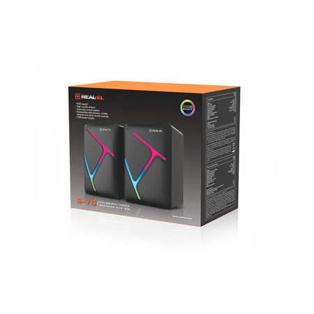 Мультимедійна USB акустична система REAL-EL S-75 – ідеальне рішення для озвучування комп’ютера чи ноутбука. Завдяки високоякісним динамікам вона забезпечує чистий та насичений звук, дозволяючи насолоджуватися музикою, фільмами та іграми.