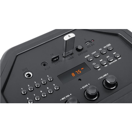 Мультимедійна портативна акустична система REAL-EL X-757 має сучасний дизайн з RGB підсвічуванням і якісним звучанням. Широкий функціонал "бумбокса" дозволяє прослуховувати музику підключаючи мобільний пристрій, ПК, TV, ноутбуки і т. п., як через вивід AUX, так і по Bluetooth. USB і Micro SD card роз'єми дають можливість прослуховувати аудіо-файли з flash носіїв. X-757 відмінний супутник для відпочинку на природі, потужний літій-іонний акумулятор на 4000 mAh 7.4V забезпечить вас музикою на вельми тривалий час, а функція караоке порадує любителів співу.