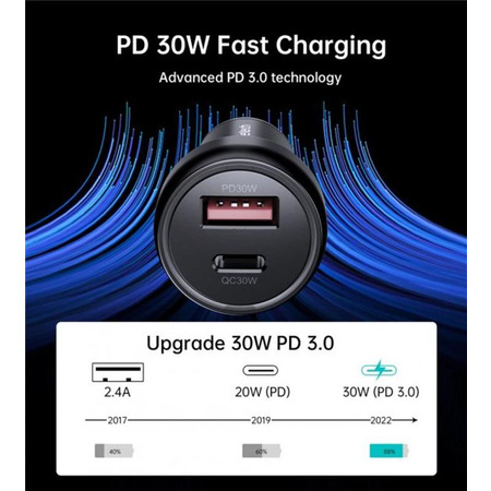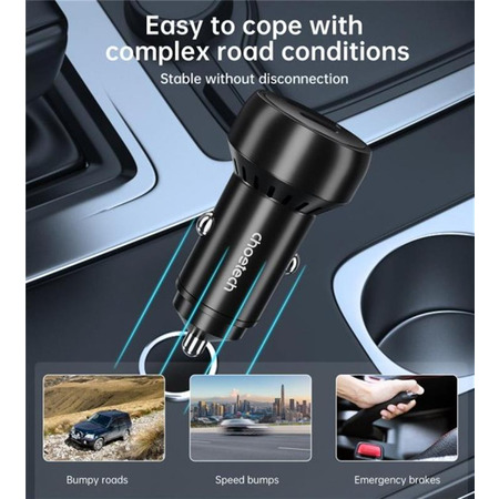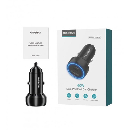 Зарядний пристрій Choetech TC0014 з вихідною потужністю 60 Вт забезпечує дуже швидку зарядку. Використовуючи порт USB Type-C, ви можете наполовину зарядити акумулятор пристрою лише за 45 хвилин. Це майже в 3 рази швидше за передачу енергії, ніж у стандартних зарядних пристроях, що використовуються в автомобілях. Незважаючи на таку високу потужність, вам не доведеться турбуватися про безпеку – розподіл живлення оптимально керується внутрішньою мікросхемою.