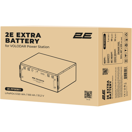 Батарея розширення ємності 2Е для Volodar, з об'ємом 5120 Вт-год (ват-годин), модель 2E-РРSEB51, призначена для підвищення потужності і тривалості роботи пристроїв. Ця батарея може бути використана в якості додаткового джерела живлення для різноманітних пристроїв, забезпечуючи їх ефективну роботу протягом тривалого часу.