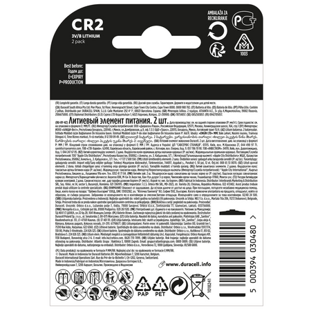 Літієві батарейки Duracell High Power CR2 виготовлені з літію високої чистоти, який забезпечує надійне та тривале живлення пристроїв розумного дому (датчиків, включаючи детектори диму, безключові замки), спалахів, ліхтариків, аксесуарів для велосипедів та електронних нашийників для собак.