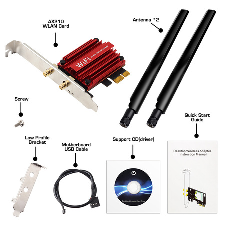 WIFI та Bluetooth для ПК. Версія блютуза 5.2 wifi підтримує максимальну швидкість від маршрутизаторів на сьогоднішній день. Затримок в онлайн іграх немає, тест пройдено в кількох сучасних онлайн пінгозалежних іграх. Вбудовується в ПК як рідний (якщо не працює у першому, потрібно вставити у другий слот).