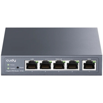 Cudy R700 є бездротовим маршрутизатором з підтримкою гігабітних портів і можливістю підключення множини WAN-з'єднань (Multi-WAN) та віртуальної приватної мережі (VPN). Цей роутер розроблений для високопродуктивних мереж з великою кількістю підключених пристроїв та потребою у безпечному зєднанні.