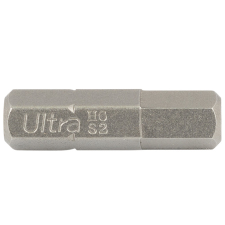 Біти HEX 6×25мм ¼" 10шт S2 (блістер) ULTRA (4015012) призначені для професійного використання. Виготовлені з легованої інструментальної сталі S2 з поверхневим зміцненням до твердості 58-61 HRC струмами високої частоти (СВЧ). Мають проточенну головну частину для роботи у вузьких місцях.