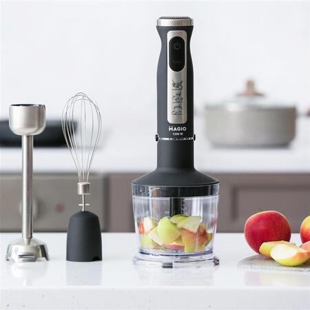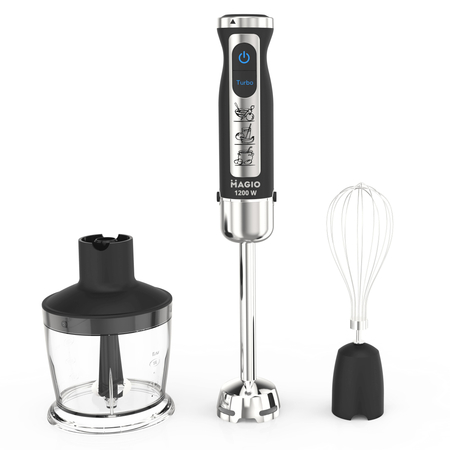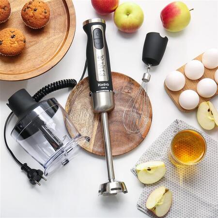 Блендер може працювати на 19 швидкостях, що плавно перемикаються. Перемикач міститься на ручці приладу, що дуже зручно. У комплект входить вінчик для збивання й мініподрібнювач об’ємом 500 мл. Ці властивості в поєднанні з компактним дизайном роблять блендер незамінним помічником на вашій кухні.