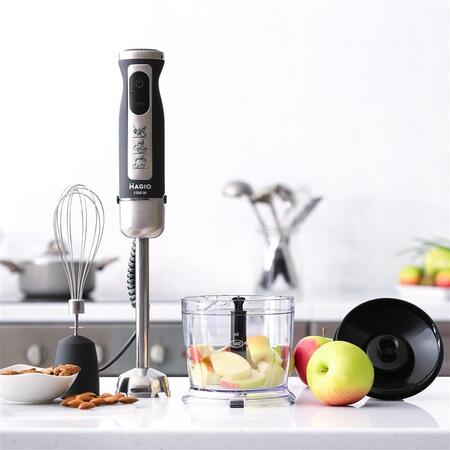 Блендерний набір MG-644 дасть вам змогу урізноманітнити ваше меню і приготувати новий кулінарний шедевр. Потужність блендера становить 1200 Вт, що забезпечує безшумну ефективну роботу впродовж тривалого часу. Заглибна частина та ніж зроблені з неіржавкої сталі — запорука стійкості до зношування й довговічності. Ергономічна ручка з приємним покриттям SOFT TOUCH.