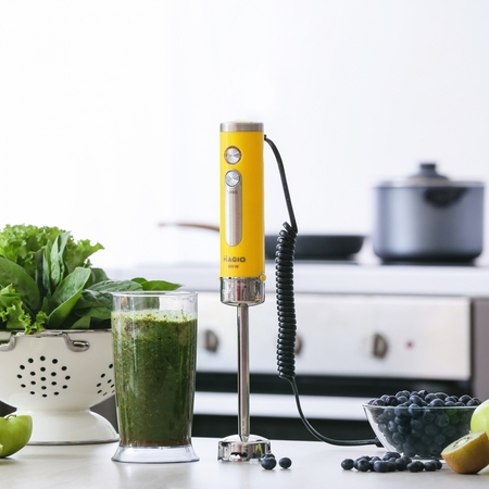 Блендер MG-646 дозволить різноманітнити ваше меню та приготувати новий кулінарний шедевр. Потужність блендера становить 800 Вт, що забезпечує безшумну ефективну роботу протягом тривалого часу. Занурювальна частина виконанана з нержавіючої сталі – запорука стійкості до зношування і довговічності. Блендер може працювати на 13 швидкостях, що плавно перемикаються. Перемикач знаходиться на держаку приладу, що дуже зручно. До комплекту входить пластиковий мірний стакан. Ці властивості в поєднанні з компактним дизайном роблять блендер незамінним помічником на вашій кухні.