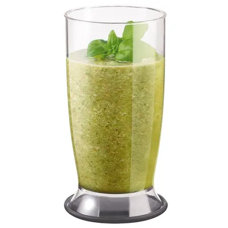 В комплект блендера входить насадка для нержавіючої сталі, з чотирма високоякними ножами з нержавіючої сталі з титановою поверхнею. Завдяки цій насадці ви зможете змішувати сирі та варені продукти, такі як пюре, каші, супи, креми, фрукти, овочі. Ножі забезпечують збереження високої частки поживних речовин при блендеруванні.