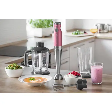 Ручний блендер з універсальними функціями що дозволять по максимуму заощадити час і місце на кухні. Потужність мотору в 1200 Вт забезпечує чудові результати, будь то змішування, збивання чи подрібнення. Крім того, у вас є вибір із дев’яти колірних варіацій, які створюють красиві металеві кольори.