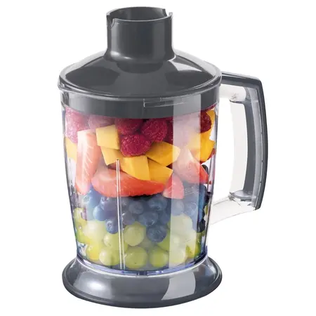 Ви більше не будете плакати при нарізанні цибулі і просто заощадите час на підготовку інгредієнтів для приготування. Подрібнювач на 1250 мл має власне лезо з нержавіючої сталі, яке надійно подрібнює, крім фруктів і овочів, також горіхи, м'ясо або лід для хорошого коктейлю. Заощадьте свій час і сльози всього за кілька кроків.