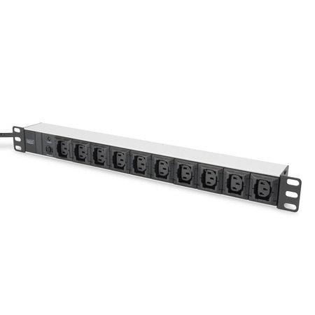 Блок розеток DIGITUS 1U з 10 розетками C13, номінальною силою струму 10A і напругою 250V, з вбудованим запобіжником та вилкою C14 - це пристрій для розподілу електропостачання в серверних шафах або мережевих шафах. Цей блок розеток розміром 1U (один блочок висоти стійки) містить 10 розеток C13, які часто використовуються для підключення серверів, мережевого обладнання та інших пристроїв. Кожна розетка має номінальну силу струму 10A та напругу 250V, що дозволяє підключати різноманітне електронне обладнання. Вбудований запобіжник допомагає захистити підключені пристрої від перевантажень та коротких замикань. Вилка C14 дозволяє легко підключити блок розеток до стандартного роз'єму C13 (IEC) на розподільчій панелі або іншому обладнанні.