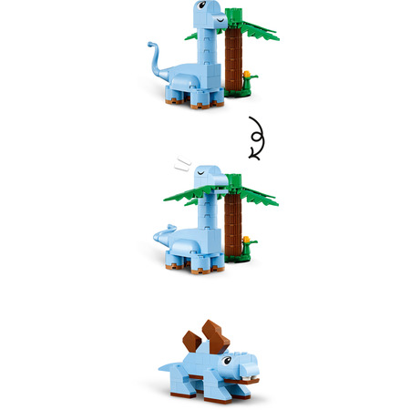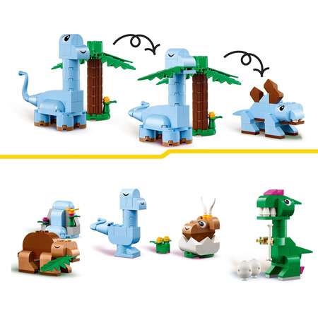 LEGO 11041 Classic Творчі динозаври - ідеальний набір для маленьких будівельників, які хочуть створити свій власний динозавр. Завдяки яскравим кольоровим деталям, діти можуть власноруч створити найрізноманітніші види динозаврів. Цей набір не лише розвиває уяву та творчість, але й допомагає вдосконалити моторику дитини.