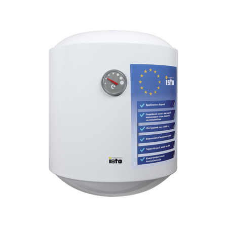 Водонагрівач ISTO це високотехнологічний прилад для нагрівання води, який оптимально поєднує в собі надійність, практичність та безпеку. Його головною особливістю є унікальна система захисту від корозії з подвійною обробкою. Спочатку резервуар цинкується, а потім покривається склокерамічною емаллю на екологічно чистій основі. Методика запозичена з харчової промисловості. Там вона використовується при обробці ємностей для зберігання різних рідин, гарантуючи захист від корозії та безпеку води для кінцевого споживача. Завдяки цим технологіям водонагрівач ISTO набуває декілька переваг, серед яких: Довговічність покриття. Емальована основа забезпечує термін служби від 10 до 25 років, значно збільшуючи експлуатаційний період водонагрівача. Повна герметичність. Емаль гарантує, що покриття залишається водонепроникним, запобігаючи будь-яким витокам і пошкодженням. Висока міцність. Матеріал покриття відрізняється підвищеною міцністю, стійкістю до механічних впливів та зносу. Стійкість до вібрацій. Покриття ефективно протистоїть вібраціям, що запобігає його трісканню та пошкодженню. Хімічна стійкість. Емаль стійка до корозії, викликаної морською водою, кислотами, лугами та газами. Широкий спектр температур. Водонагрівач здатний функціонувати в широкому спектрі температур, зберігаючи свої властивості. Інертність до грибка (плісняви). Поверхня покриття перешкоджає їх утворенню та росту, забезпечуючи гігієнічність використання. Внутрішній бак виготовлений з оцинкованої сталі низькокорозійного типу Nippon Steel (Японія) на 1,7 мм. Для ефективної теплоізоляції використовується пінополіуретанова піна BAYER (Німеччина) на 25-30 мм. Таке поєднання має оптимальний параметр теплопровідності (=0,022), мінімізуючи тепловтрати та сприяючи економії енергії відповідно до євростандартів. Електричну частину представляє надійний нагрівальний елемент Thermowatt (Італія) та терморегулятор тієї ж марки, забезпечуючи стабільну та безпечну роботу приладу. Виробник надає гарантію на електрику водонагрівача строком на 1 рік. Крім того, він оснащений інтегрованим магнієвим анодом для додаткового захисту від корозії з мінімальним терміном експлуатації 1 рік. Керування водонагрівачем зручне та інтуїтивно зрозуміле завдяки внутрішньому терморегулятору та зовнішньому термоіндикатору. Також передбачена система індикації робочого режиму. Прилад розрахований на робочий тиск 0,6 MPa та має вологозахист IP24, що робить його безпечним та надійним у експлуатації. Більшість комплектуючих виготовлено в Євросоюзі, а збірка здійснюється відповідно до європейських стандартів. Гарантія на водонагрівач та внутрішній бак розрахована на 1 та 5 років відповідно (7 років на водонагрівачі з сухим теном), що є додатковим підтвердженням його високої якості та довговічності.