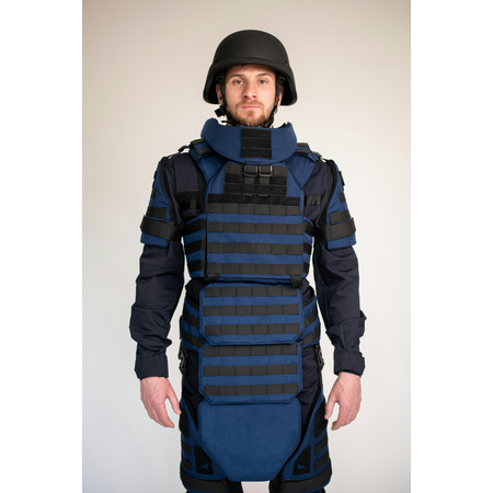 Бронекостюм демінера від Ладомир, клас захисту ДСТУ 2, розмір M та синього кольору, є високоякісним захисним засобом, спеціально розробленим для роботи в умовах вибухонебезпечних об'єктів та для проведення робіт зі збору та обезшкодження вибухонебезпечних матеріалів. Цей бронекостюм забезпечує високий рівень захисту згідно стандартів Державного стандарту України та дозволяє демінерам та оперативним службам працювати в безпеці. Розмір M забезпечить зручне та комфортне одягання під час виконання робіт. Кольорове рішення у синьому кольорі дозволяє бути видільним та легко впізнаваним під час виконання робіт у небезпечних умовах. Бронекостюм демінера від Ладомир є надійним та ефективним захисним засобом, який допоможе забезпечити безпеку та захист під час роботи з вибухонебезпечними матеріалами.