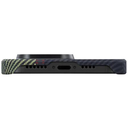 Чохол Pitaka MagEZ Case 3 поєднує високу міцність, мінімальну вагу і сумісність з екосистемою MagSafe. Він виготовлений з арамідного волокна – матеріалу, який використовується в авіа- і автопромі завдяки своїй стійкості до зносу і впливу зовнішнього середовища. Товщина корпусу мінімальна, а вага практично невідчутна, що дозволяє зберегти оригінальні габарити смартфона без обтяження або потовщення. Унікальна текстура з 3D-мікропрофілем не тільки візуально виділяє аксесуар, але і забезпечує впевнене утримання в руці навіть при тривалому використанні. Вбудовані магніти, вирівняні за стандартом MagSafe, дозволяють використовувати всі фірмові аксесуари та бездротові зарядні пристрої без втрати ефективності, а підвищені краї навколо блоку камер допомагають уникнути пошкоджень скла при контакті з поверхнями.