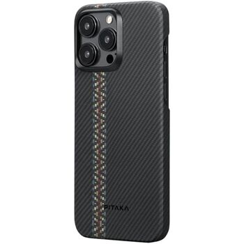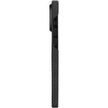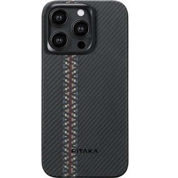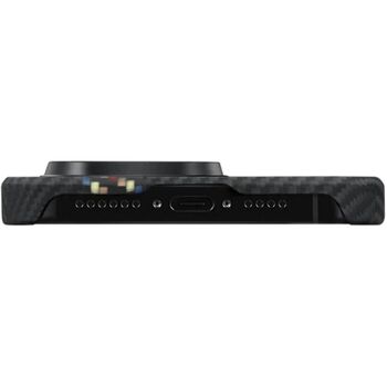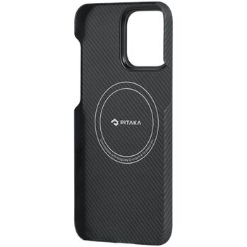 Чохол Pitaka MagEZ Case 4 поєднує високу міцність, мінімальну вагу і сумісність з екосистемою MagSafe. Він виготовлений з арамідного волокна – матеріалу, який використовується в авіа- і автопромі завдяки своїй стійкості до зносу і впливу зовнішнього середовища. Товщина корпусу мінімальна, а вага практично невідчутна, що дозволяє зберегти оригінальні габарити смартфона без обтяження або потовщення. Унікальна текстура з 3D-мікропрофілем не тільки візуально виділяє аксесуар, але і забезпечує впевнене утримання в руці навіть при тривалому використанні. Вбудовані магніти, вирівняні за стандартом MagSafe, дозволяють використовувати всі фірмові аксесуари та бездротові зарядні пристрої без втрати ефективності, а підвищені краї навколо блоку камер допомагають уникнути пошкоджень скла при контакті з поверхнями.