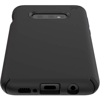 Захисний чохол Speck Presidio Pro ідеально підходить для тих, хто цінує надійність та комфорт. Міцна конструкція із поєднання силікону та пластику з амортизуючим шаром IMPACTIUM по внутрішньому периметру забезпечують подвійний захист вашого Samsung Galaxy S10 Plus (G975) від падінь та ударів. Софт-тач покриття приємне на дотик, покращує хват у руці та не зберігає відбитки пальців. Незважаючи на відмінний захист, чохол залишається тонким та не заважає бездротовій зарядці. Всі роз’єми та камера лишаються легкодоступні завдяки точним вирізам, а кнопки будуть захищені м’якими пилезахисними дублікаторами. У надітому стані чохол трохи виступає над рівнем лицьової панелі, створюючи невеликий бортик, що додатково захищає екран від випадкових подряпин.