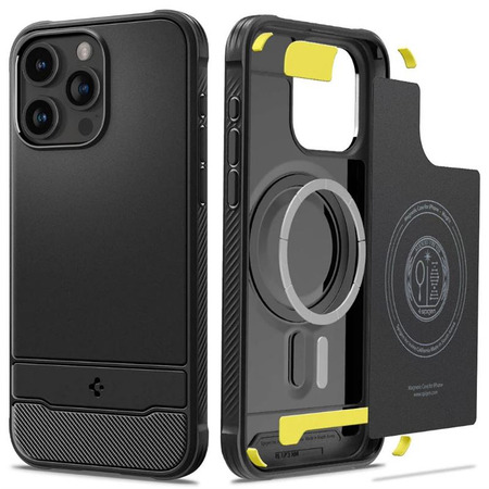 Міцний і вишуканий. Rugged Amor MagFit святкує десятиріччя захисту з абсолютно новим дизайном для вашого iPhone. Сучасні деталі з вуглецевого волокна витончено виблискують, а багатошаровий бампер захищає всі кути. Готовий до роботи з сильнішими магнітами для MagSafe. Готовий витримати удар.
