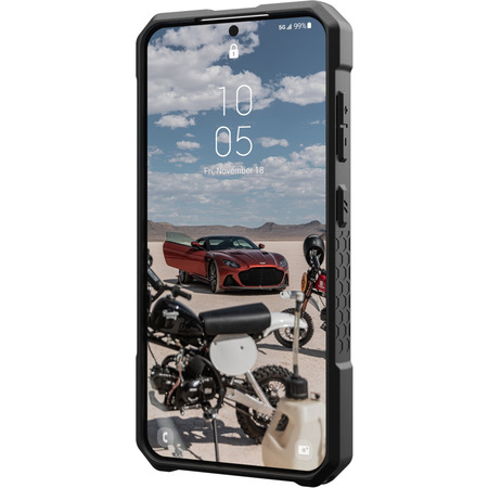 Monarch - це 5 шарів сучасного захисту, що дозволяє зберегти смартфон від різних пошкоджень. Основа чохла виготовлена з міцного та легкого полікарбонату. З внутрішньої сторони розміщена поліуретанова TPU накладка, чудово поглинає та розсіює наслідки сильних ударів та зберігає кути смартфона від пошкоджень. Поверх накладки йде шар з волокна, своєю чергою він не тільки захищає, але й надає чохлу особливий дизайн. Завершальним шаром є рамка з металізованого полікарбонату, яка бере на себе завдання захисту пікових навантажень та падінь смартфона.