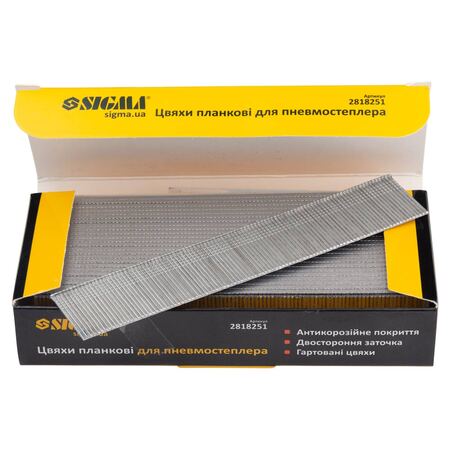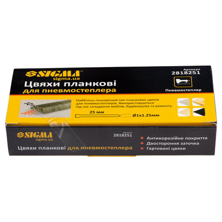 Цвяхи планкові 25×1.25×1мм для пневмостеплера (5000шт) SIGMA (2818251) - відносяться до найбільш поширених типів цвяхів, з тих, що часто застосовуються в пневмостеплерах.
