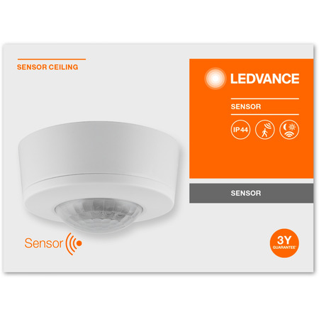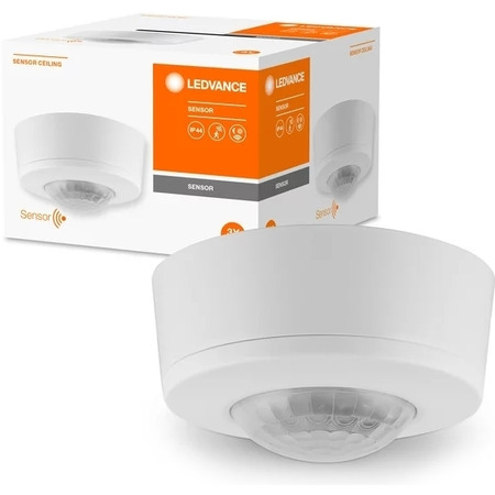 Датчик руху Ledvance Sensor Ceiling (4058075244719) є круглим датчиком, призначеним для встановлення на стелі. Він забезпечує автоматичне включення світла при виявленні руху у приміщенні та автоматичне вимкнення після певного часу відсутності руху. Датчик має регульовані параметри, такі як дальність виявлення, час затримки перед вимкненням і рівень освітленості для активації. Таким чином, він забезпечує комфортне освітлення та економію енергії у приміщеннях.