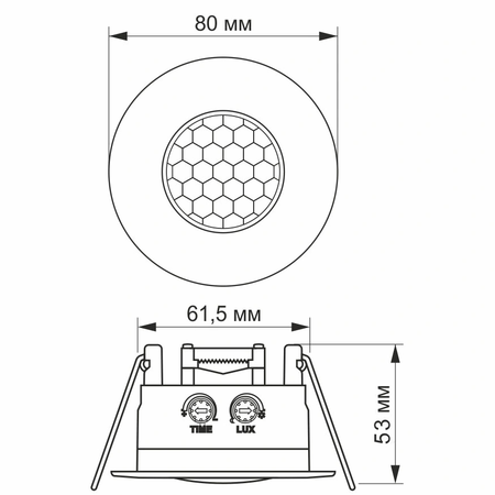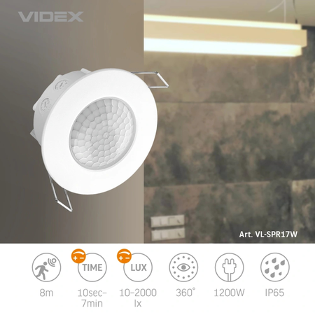 ● Максимальне навантаження: 1200 / 300 Вт; ● Освітленність, вмикання та вимикання: < 10 -2000 люкс; ● Кут виявлення: 360°; ● Відстань виявлення: 8 м; ● Розміри: 80 х 53 мм; ● Робоча температура: -20°C ~ + 40°С