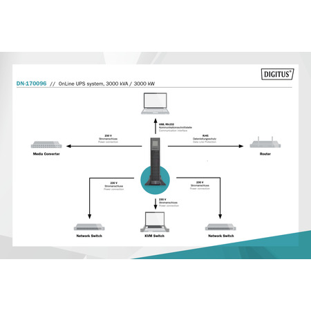 Digitus DN-170096 має вбудований екран для відображення інформації про стан пристрою, може автоматично виключати навантаження в разі перевищення певних параметрів і багато іншого. Цей UPS може забезпечити вам надійний та безперебійний захист вашої електронної техніки від проблем з електроживленням.