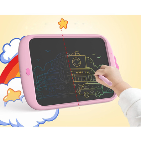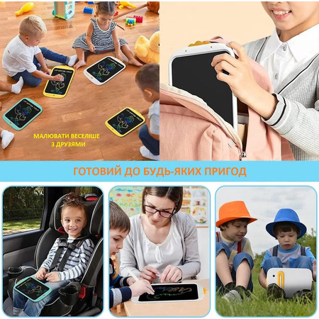 Планшет для рисования. Позволяет ребенку развивать художественные навыки. Диагональ экрана 10 дюймов. Имеет переключатель для фиксации картинки, чтобы нельзя было ее случайно удалить.