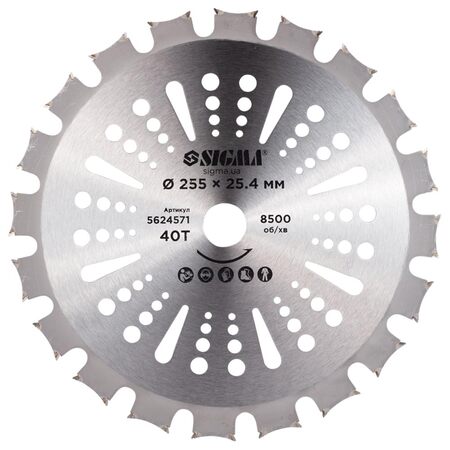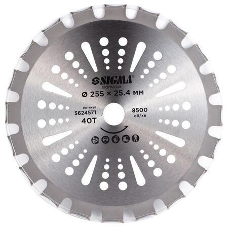 Диск для тримера з твердосплавними напайками Ø255×25.4мм 40Т двосторонній SIGMA (5624571)