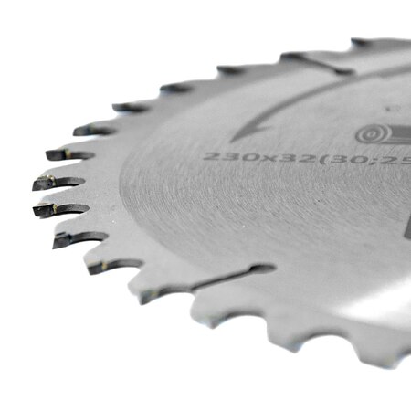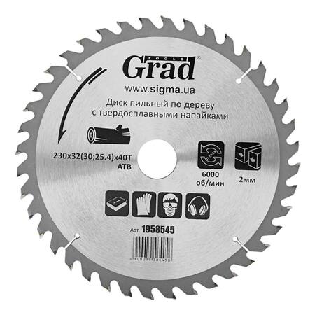 Диск пиляльний по дереву з твердосплавними напайками Ø230×32 (30; 25.4)×40Т, 6000об/хв GRAD (1958545) призначений для виконання будь-яких стандартних робіт по дереву, різання виробів з м'якої і твердої деревини, фанери, ДСП, ДВП, МДФ і комбінованих матеріалів на основі дерева. Додатковою перевагою є можливість заміни і заточування зуба.
