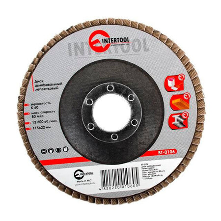 Диски пелюсткові пропонуються різної зернистості, що дозволяє вибирати оптимальний варіант залежно від конкретних завдань – від грубого видалення матеріалу до більш тонкої обробки. Маркування даного диска К60 передбачає середню зернистість для шліфування після чорнової обробки обробки.