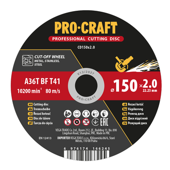 Диск відрізний Procraft CD150x2.0 має наступні характеристики: