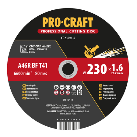 Диск відрізний Procraft CD230x1.6 має наступні характеристики: