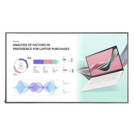 Цей дисплей підтримує безперервну роботу 24/7, що робить його ідеальним для використання в місцях з високим трафіком або робочим графіком. Операційна система webOS вбудована в пристрій, що дозволяє легко управляти вмістом та налаштуваннями, встановлювати додатки та користуватися різними функціями.