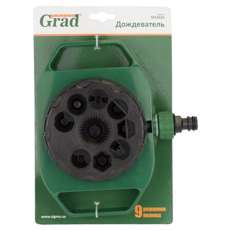 Дощувач 9 режимів (ABS) GRAD (5014525) призначений для поливу присадибних ділянок, городів, клумб, газонів і т.д. Дуже простий у використанні не вимагає складання і налаштування гарантують рівномірне і м'яке зрошення без калюж.